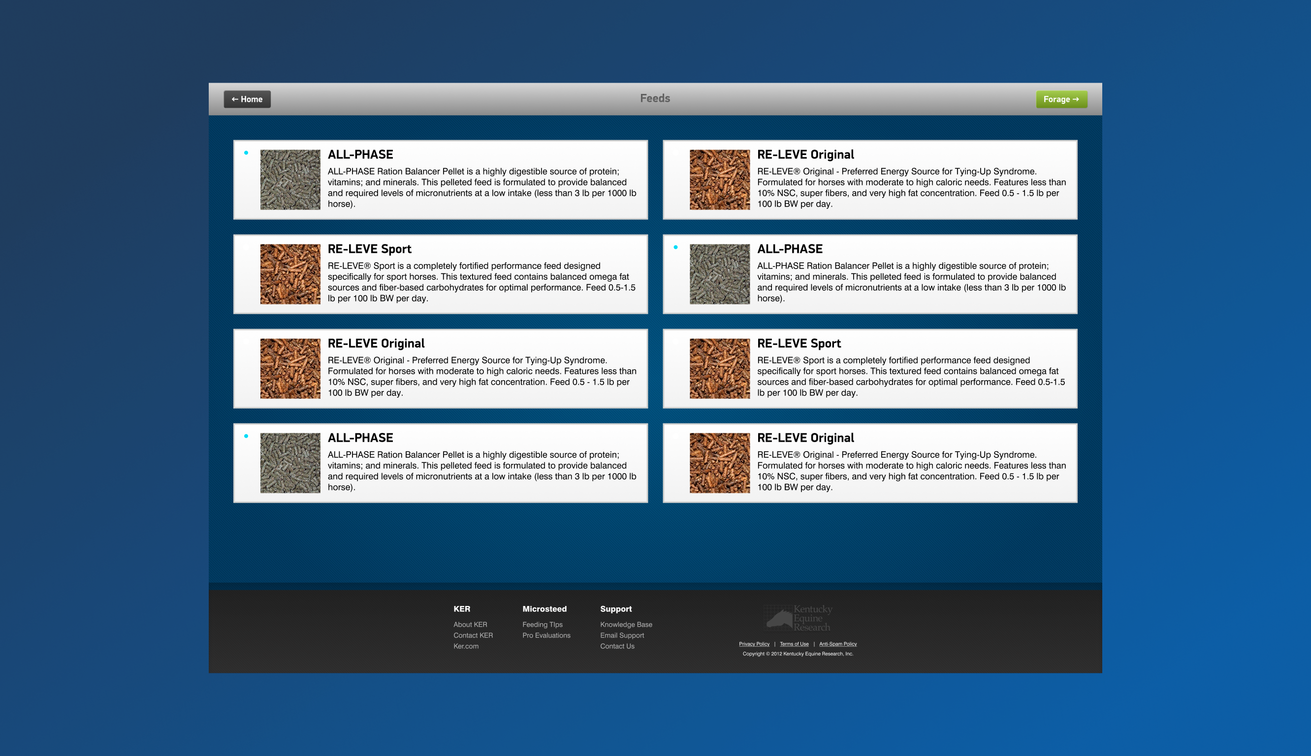 Design and research for the MicroSteed Ration Wizard followed a user-centered process despite our fast timeline. We conducted a few informal interviews with target users: horse owners, barn managers, and equine nutritionist. Through these conversations, we learned what users would want from a feeding tool – simplicity, trustworthiness, and clear, actionable recommendations. Using this input, I sketched the initial user flow and wireframes for the wizard’s multi-step interface. We iterated quickly with feedback from KER’s nutrition experts to ensure the questions asked were relevant and not overly intrusive. For example, we reduced the number of inputs by making some behind-the-scenes assumptions to keep the flow moving (if a user didn’t know a detail, the system could use average values). We also included helpful microcopy and tooltips wherever users might get stuck, based on common questions our interviewees had raised. In parallel, for the Shopify site redesign, we built several different versions focusing on key pages (homepage, product page, cart, checkout) and reviewed them with internal stakeholders who were also equine customers themselves.